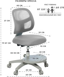 - Регулировка высоты сидения: 39-59 см