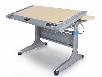 Модель стола М28 отличается простым дизайном без лишних декоративных элементов. Он чист и не нагружен, у него простые линии и формы, а также материалы и цвета используются для достиженияя простоты,чтобы не отвлекать внимания ребенка. Этот стол, благодаря сдержанному дизайну, гармонично впишется в ваш дом. Основная столешница изменяет высоту относительно неподвижного основания парты с помощью специального надежного механизма. Этот механизм позволяет легко и быстро изменять высоту столешницы не только взрослому, но и ребенку. За этой партой можно заниматься даже стоя. А заднюю статичную часть можно использовать для размещения книг, установки держателей экрана компьютера или книжных полок.