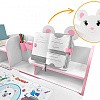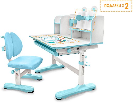 Главной особенностью комплекта является растущее кресло с двойной ортопедической спинкой и мягким съемным сиденьем, обтянутым мебельной дышащей тканью. Кресло регулируется по высоте и глубине специальными винтами. Максимальная нагрузка - 60 кг. На каркасе крепится ручка для удобного перемещения кресла по комнате.
