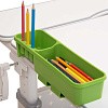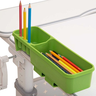 Фиксируясь на краю столешницы, пенал находится всегда под рукой ребёнка, им легко пользоваться, но при этом он не занимает ни сантиметра рабочего пространства. Это одна из тех вещей, к которым очень быстро привыкаешь и взаимодействие с ними производится машинально, без каких-либо сомнений и затруднений. Подчас, именно такие мелкие аксессуары к растущим партам становятся тем самым краеугольным камнем, без которого весь процесс обучения и физического развития буксует и слабо продвигается вперёд. Какими бы чудесными свойствами ни обладали растущие парты, без маленьких и приятных, незаметных и удобных помощников им не обойтись!