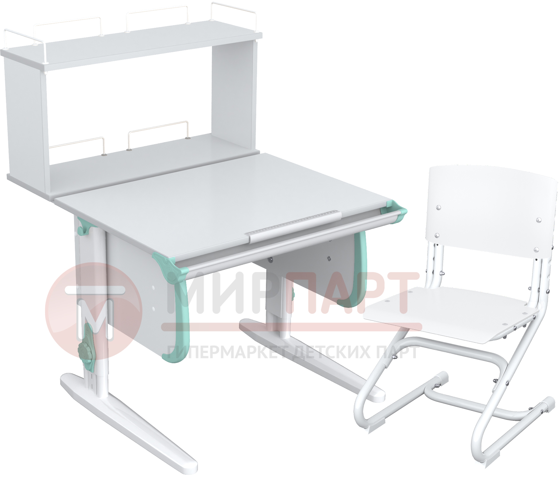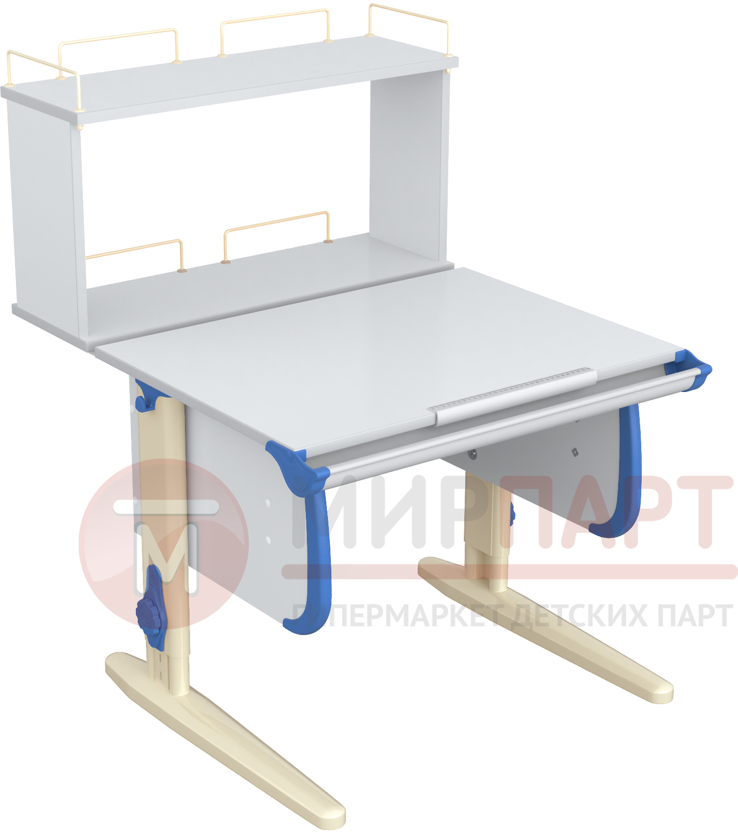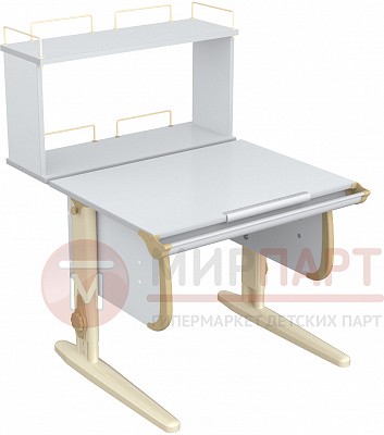 Парта СУТ-24-01-Д1 – это новинка из коллекции «Дэми-White», дополнительно оснащённая двухъярусной задней приставкой. Фактически, такая полка в два раза увеличивает полезную площадь парты, позволяя без проблем разместить все необходимые для учёбы школьные принадлежности: книги, тетради, контурные карты.