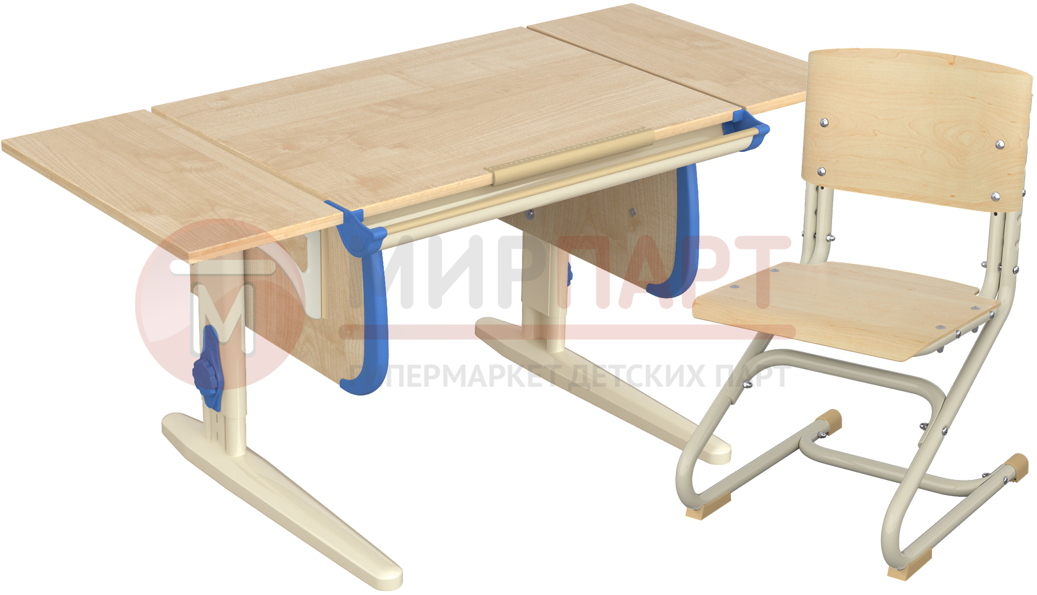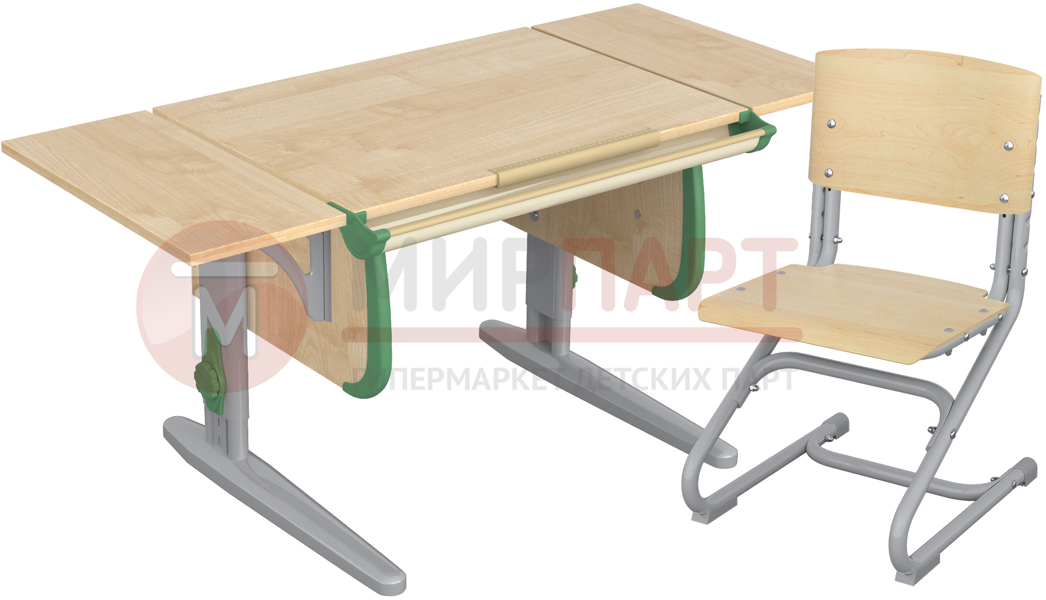 Парта 120 см с раздельной столешницей + короткая боковая приставка 55 см.
