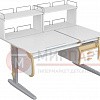 Парта 120 см с раздельной столешницей + тумба + 2 задние двухъярусные приставки