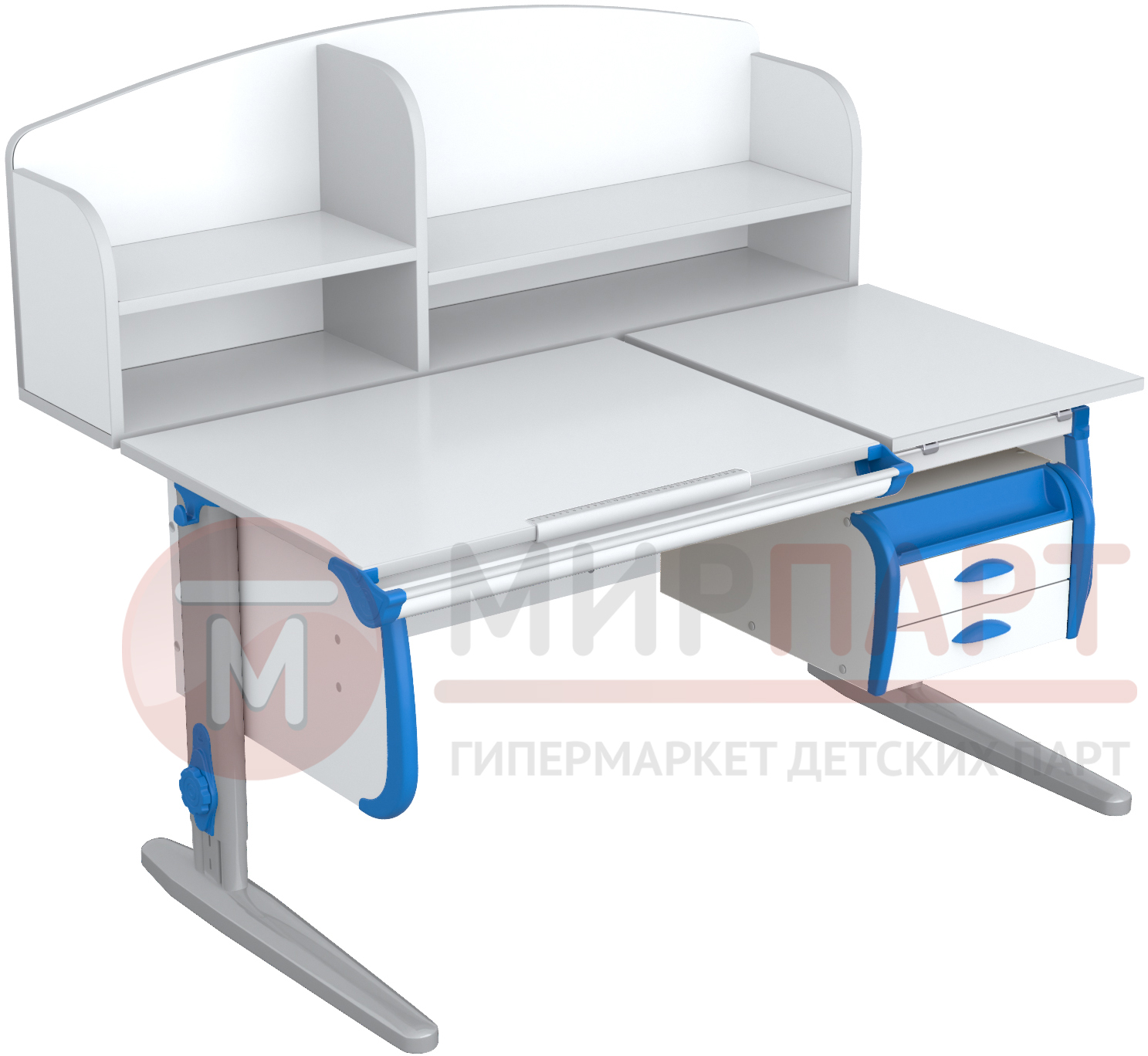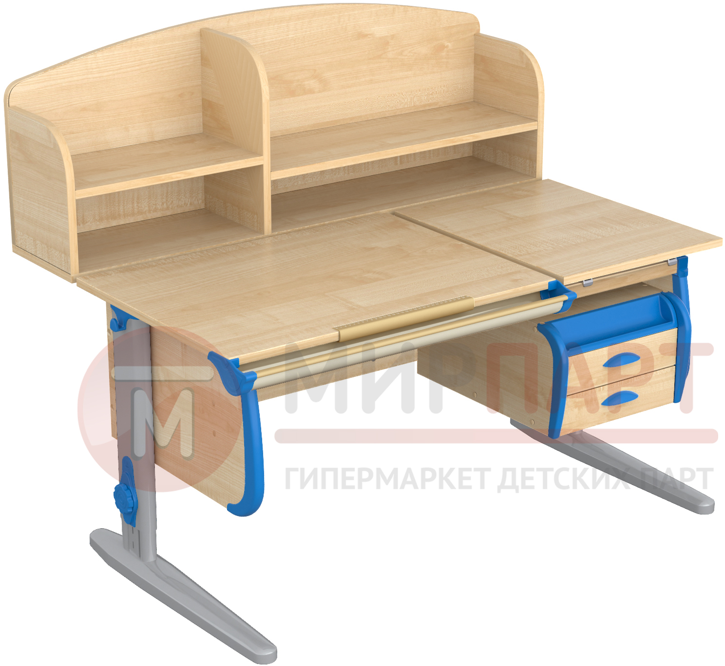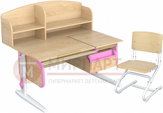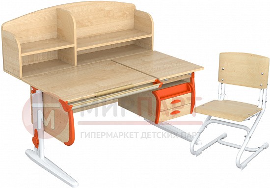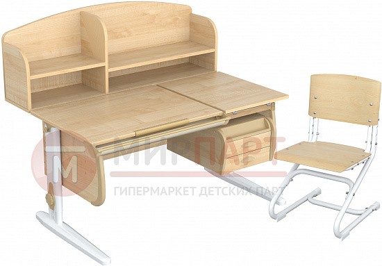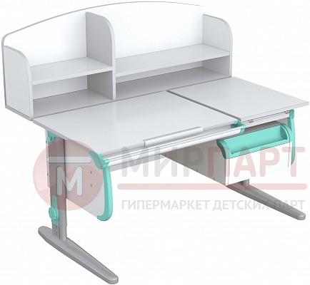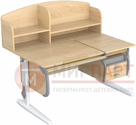 Парта 120 см с раздельной столешницей + тумба + 2 задние надстройки