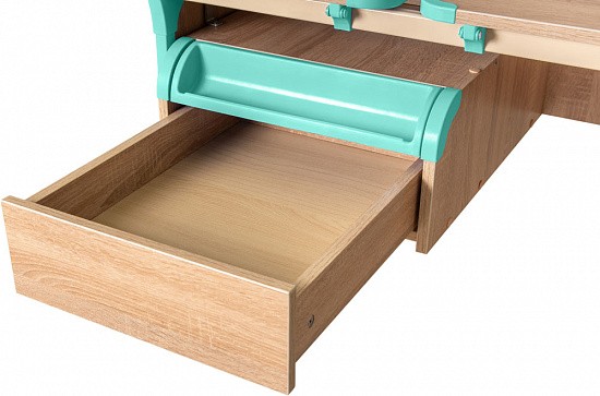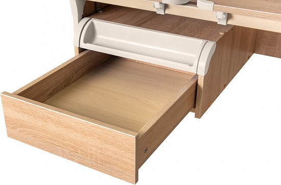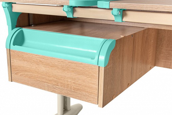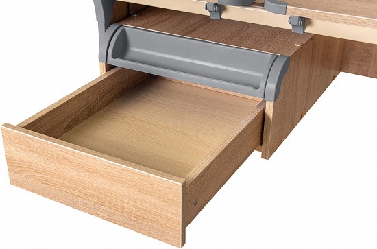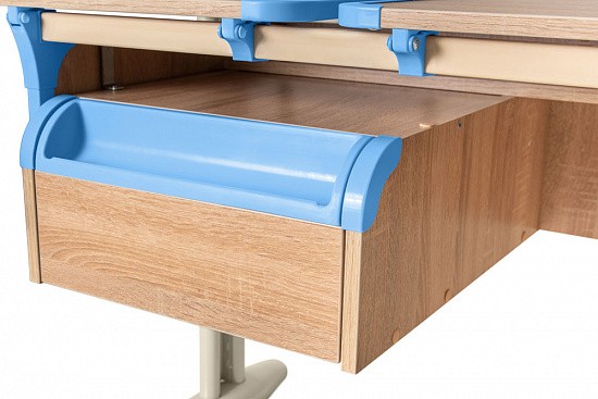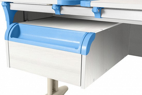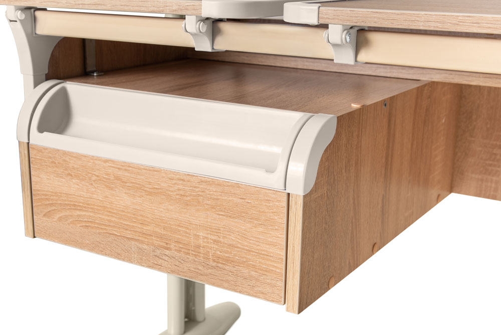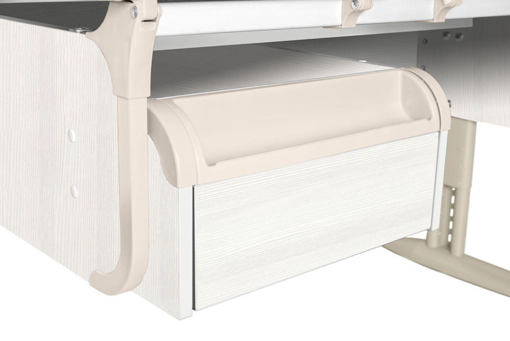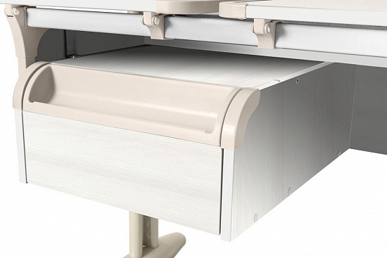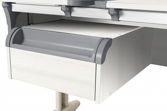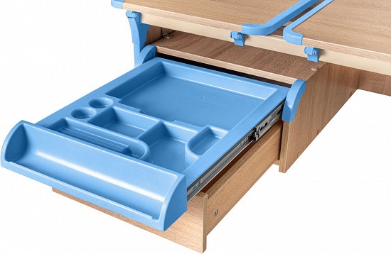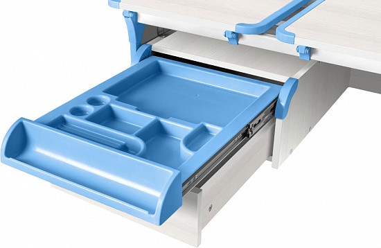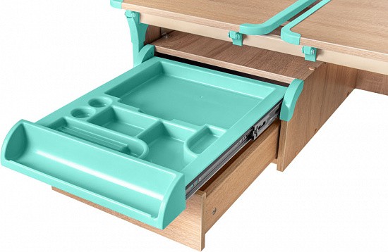 Выдвижной пенал со специальными отделениями для канцелярских мелочей, помогают формировать организованность и умение содержать рабочее место в порядке. Тумба может монтироваться как слева, так и справа.
