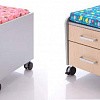 Удобство, компактность, функциональность – два вместительных ящика разместят все, что необходимо в учебном процессе. Углы и кромки скруглены, таким образом, риск случайной травмы сведен к минимуму. Кроме этого, конструкция тумбы включает в себя удобную мягкую подушку, которая превращает её в мягкий пуфик. Когда к ребенку будут приходить гости, тумбочка станет дополнительным сиденьем. Небольшие колесики позволяют легко катать тумбу по комнате, однако, если Ваш непоседа начнет на ней кататься сам, их можно заблокировать в одном положении.